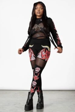 Never be too busy to accessorize. With the ‘Baby Hex’ suspender belt, you can add instant drama to your fav outfits – turnin’ em from just alright to Queen of the Night. High-quality faux leather with triple strap high-waist, statement hardware with pentagram and loaded with D-rings and adjustable straps. Hell-to-the-Yeah!