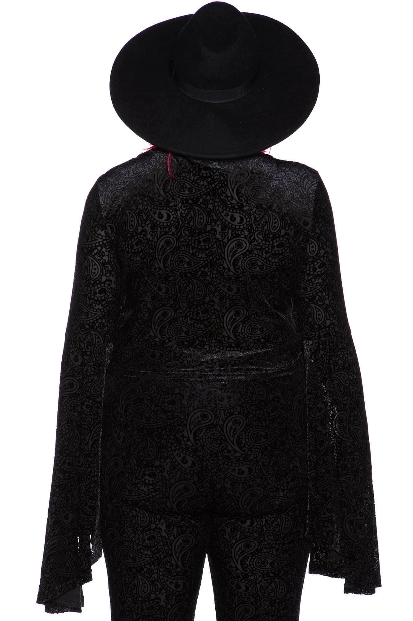 Be ready for magic in our ‘Betty Sage’ velvet top. Conjured using super soft-touch velvet which stretches to perfection for a comfortable and flattering fit. Cascading bell sleeves and seductive lace-up front; this stand-out piece is guaranteed to have you feeling powerful. Complete with a burnout pattern all over for a touch of oh-la-la. This magical lil’ piece is a dream to style – looks great from dusk to dawn!