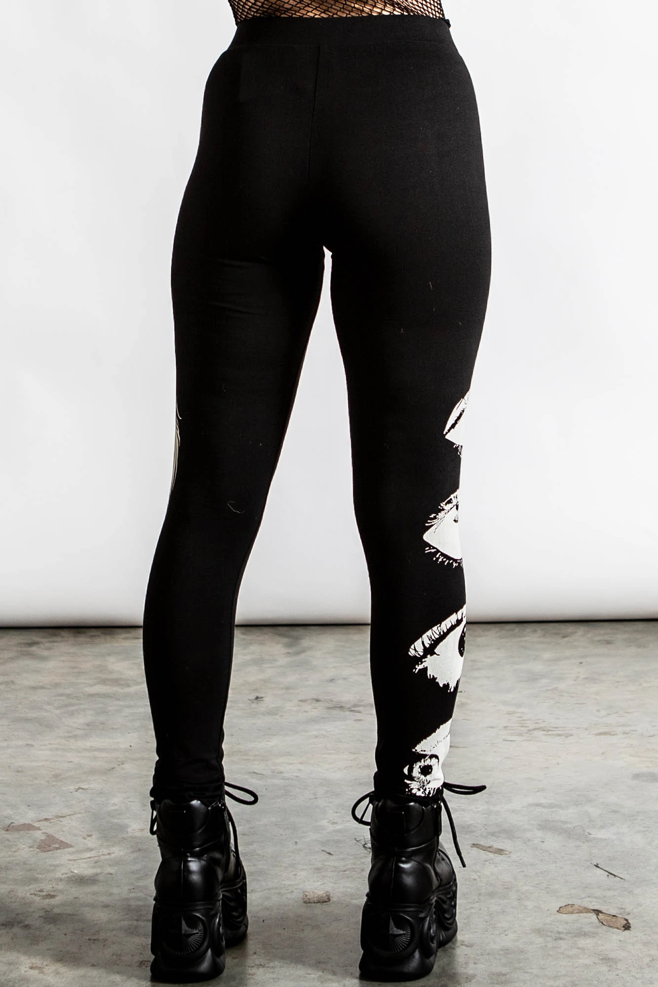 If you’ve got it, haunt it! Our ‘Insomnia’ leggings are a must-have in your wardrobe – conjured using a super-soft cotton blend with a wide waistband for a comfortable fit. Complete with contrasting graphics on both legs. These leggings are a staple piece with a twist – adds attitude to any look!