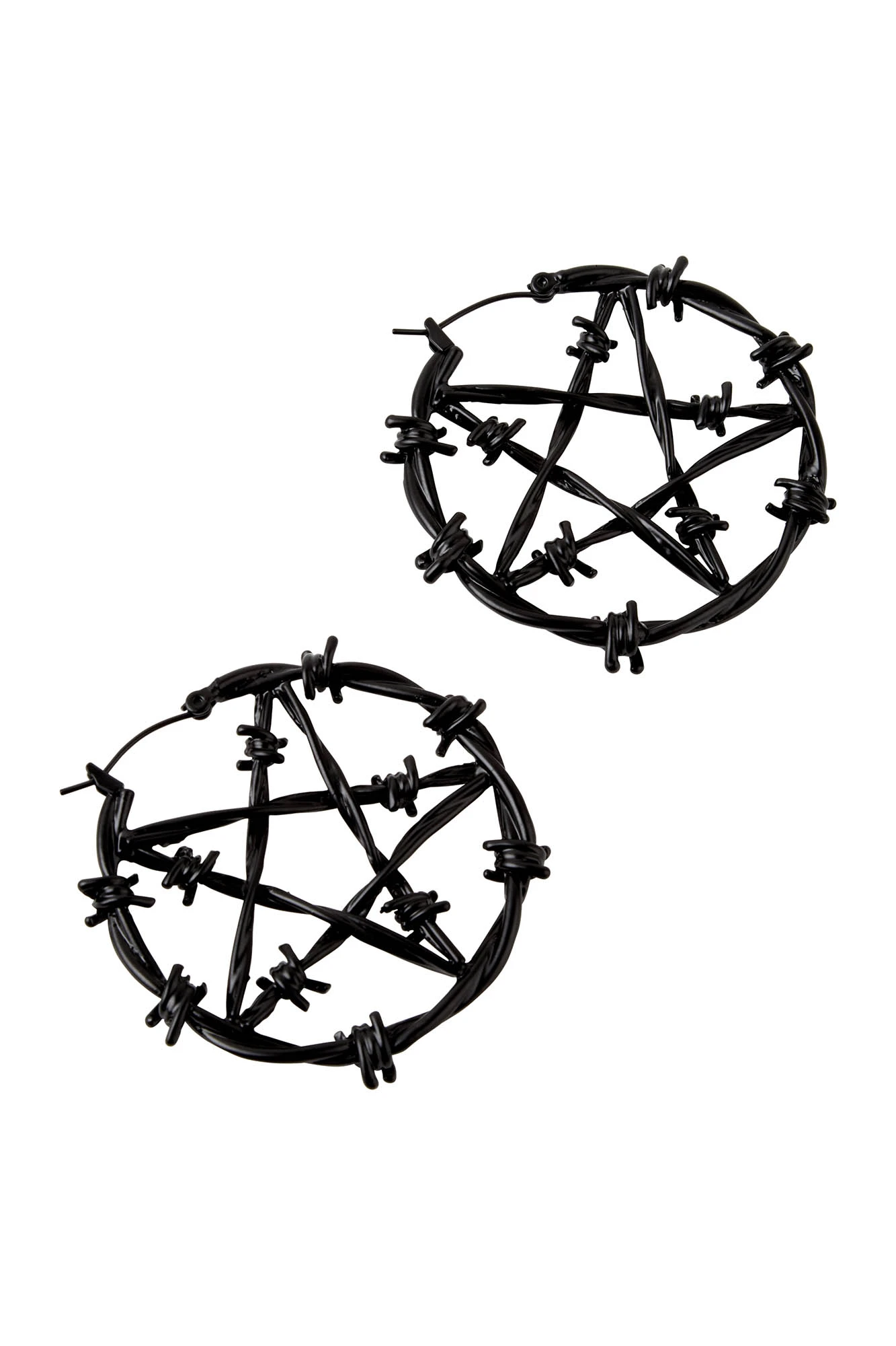 Be the witch you were born to be. Featuring a barbwire pentagram design in a hoop shape, our ‘Life’s a Witch’ earrings complement any outfit. Be ready to make heads roll!