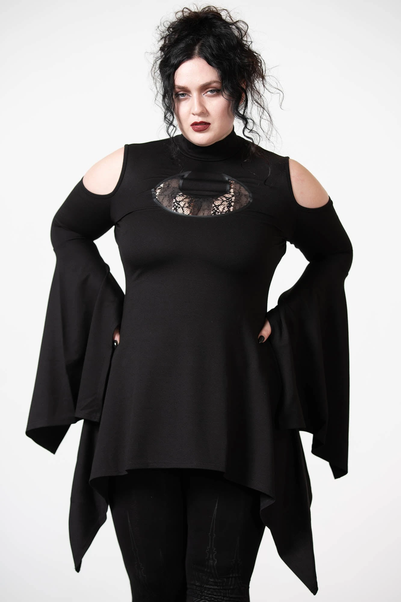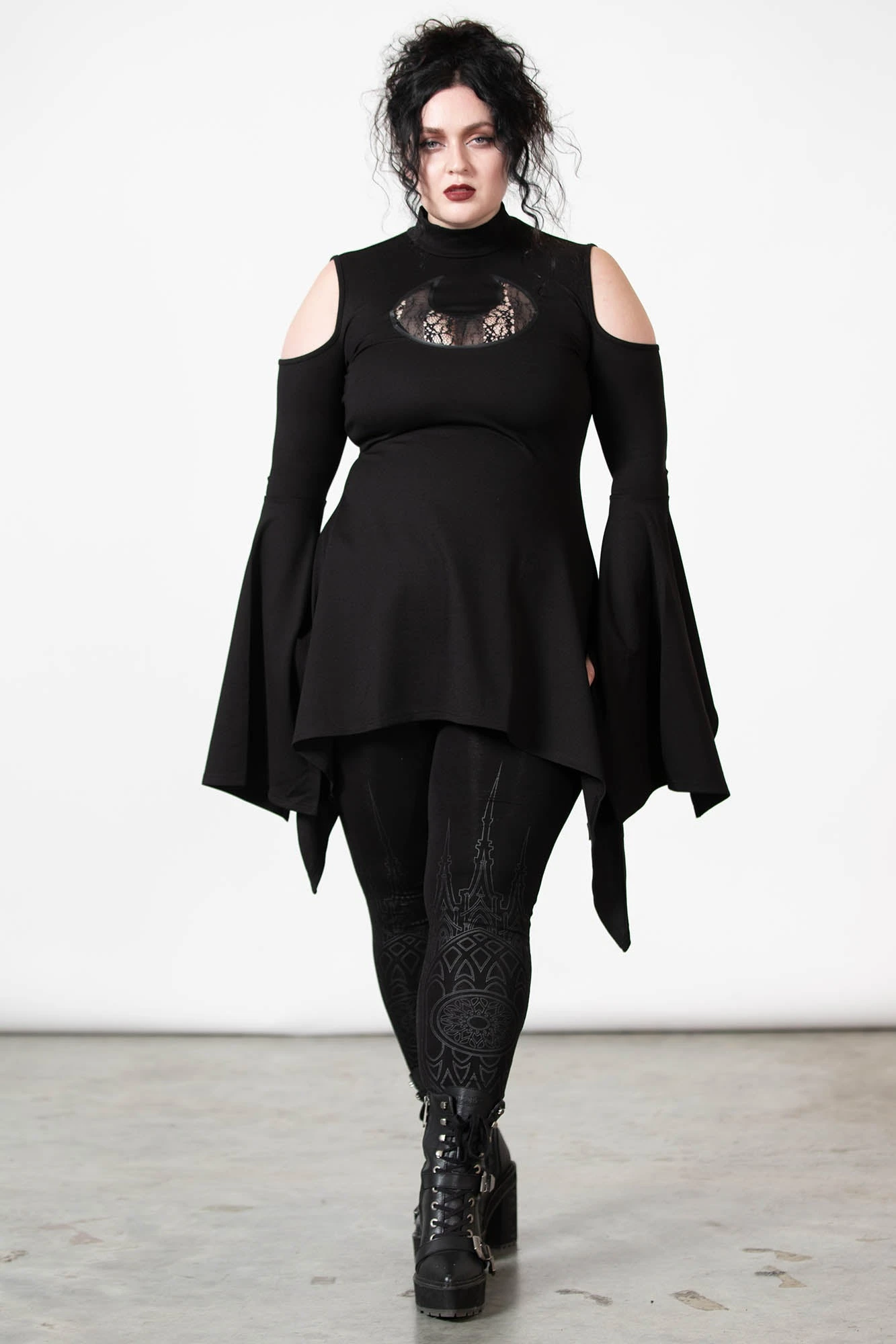 – Statement crescent moon lace cut-out.