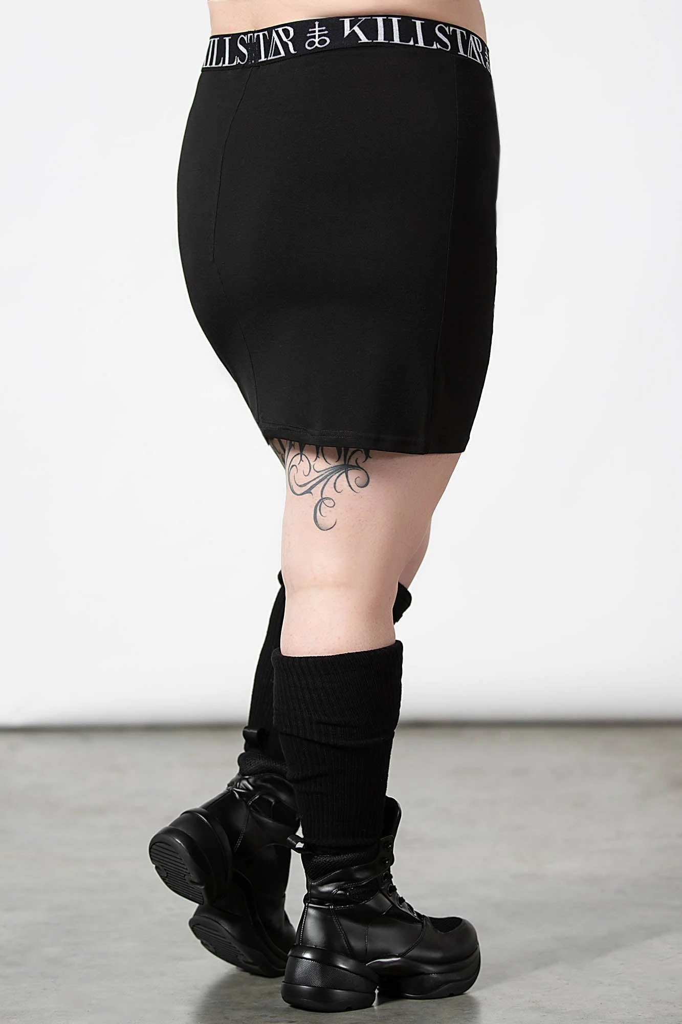 Who said basic had to be boring? Our ‘Prime Time’ mini skirt is crafted in soft, stretch fabric for a killer fit. Featuring a bold KILLSTAR branded elasticated waistband, it’s a staple piece in any dark wardrobe & perfect for layering.