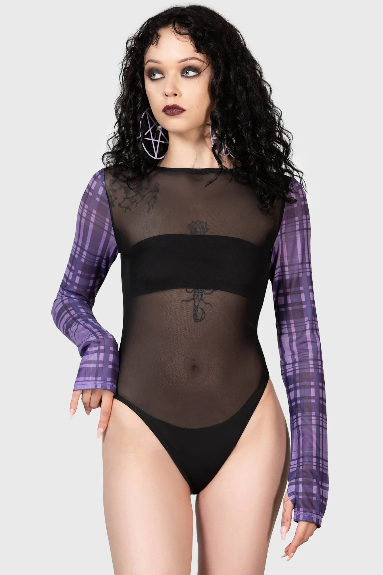 – Statement purple and green tartan.